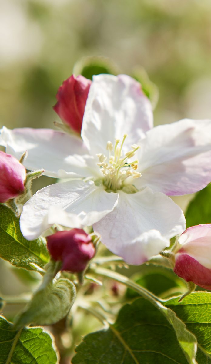 Le producteur sélectionne ensuite les fleurs de pommiers les mieux exposées à la lumière pour ne pas surcharger l’arbre et obtenir des fruits bien colorés et de bonne taille.